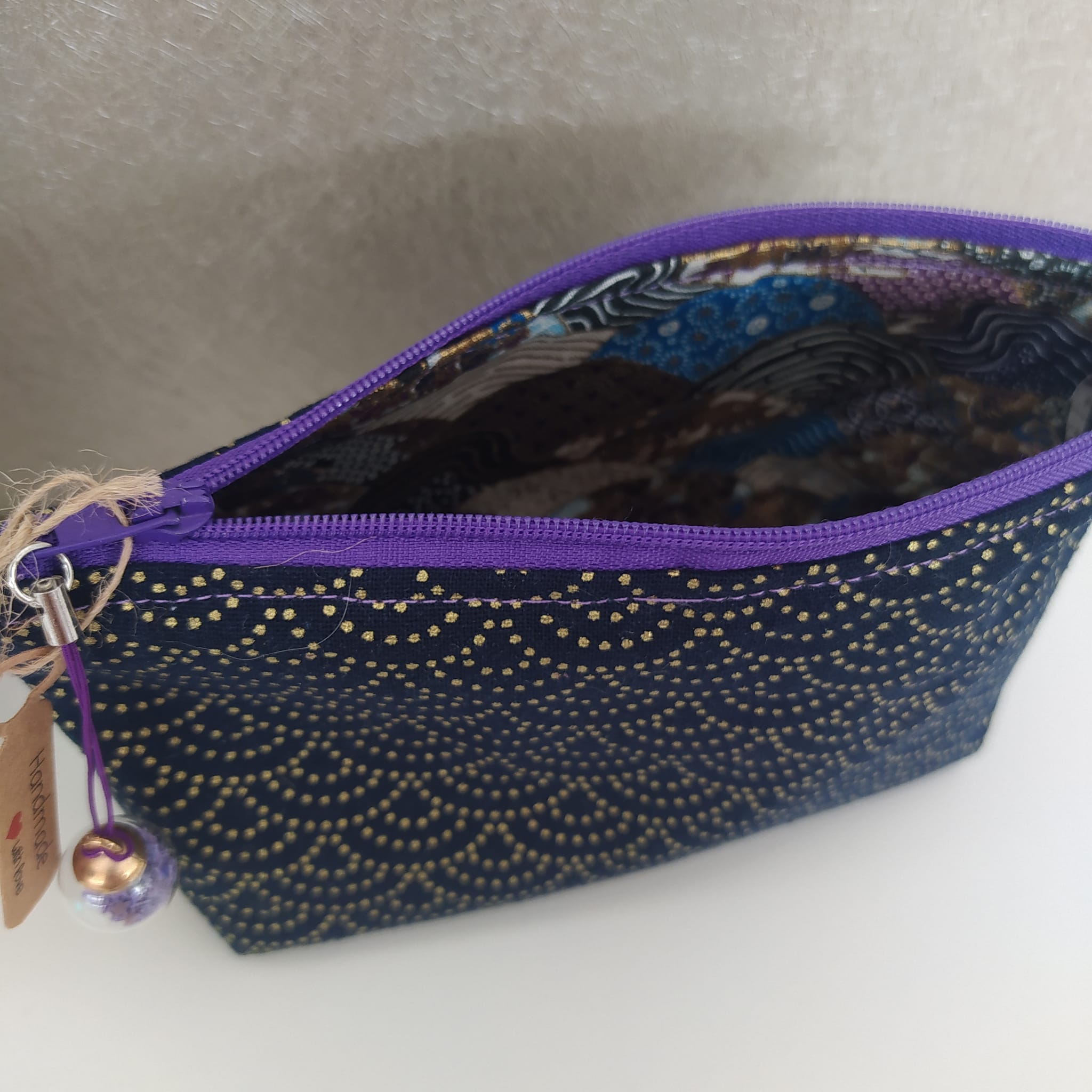 Pochette elegante in cotone giapponese, foderata, con pendaglio.